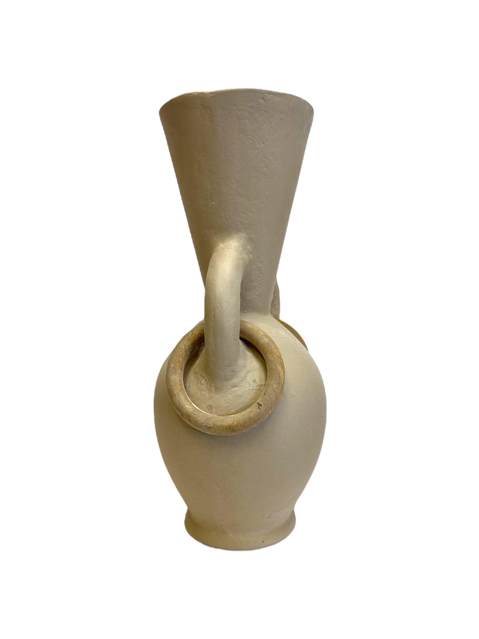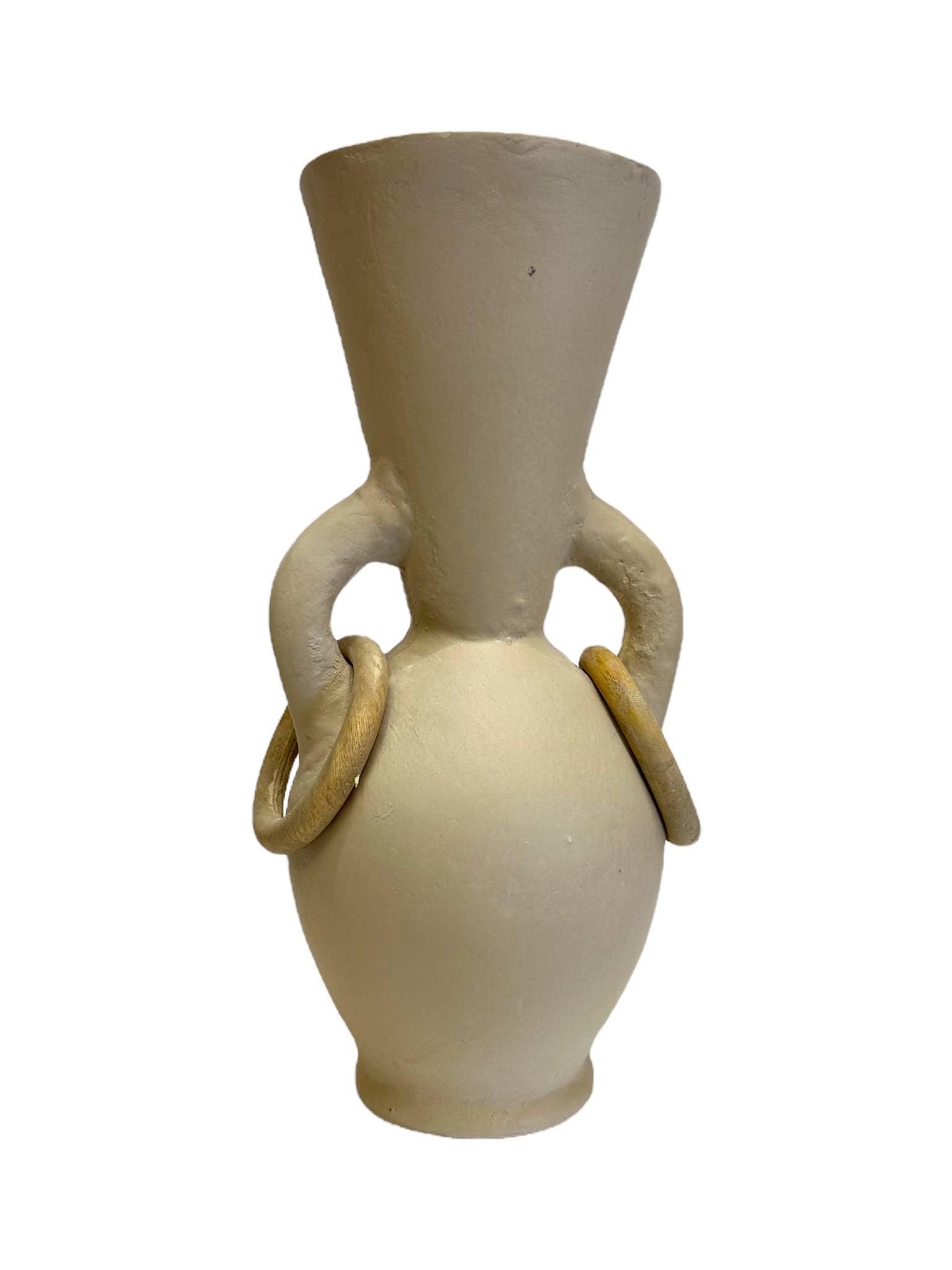 A neutral-colored ceramic vase featuring subtle wood ring details, all in a harmonious color scheme. Its minimalist design offers seamless elegance, perfect for those who appreciate understated beauty and refined decor.”