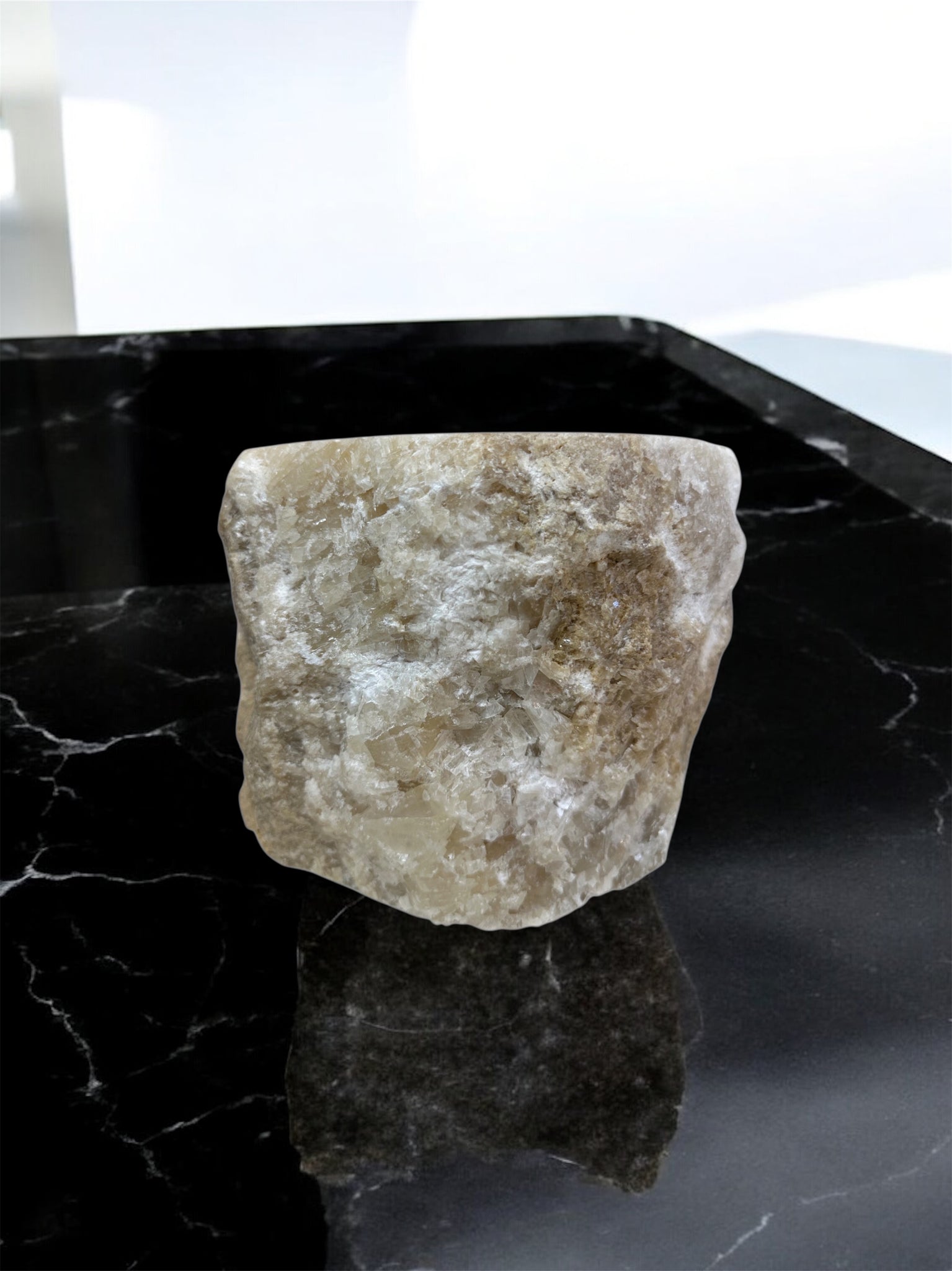 Sculpted from raw onyx and hand-chiseled to preserve its natural form, this statement candle is a true fusion of earth and elegance. The interior is polished to a smooth, lustrous finish—creating a striking contrast against the rugged outer stone.
