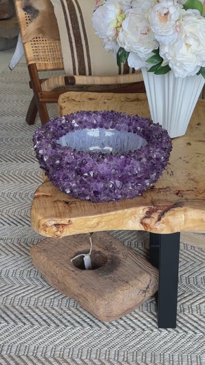 Handcrafted with natural Amethyst crystals, this sculptural vessel offers both beauty and versatility. Perfect as a planter for orchids or succulents, or an elegant bowl for serving or just to be. Known for its calming and protective energy, Amethyst brings serenity, balance, and a refined touch of luxury to any space. Each piece is one of a kind.