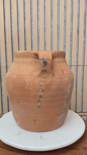This authentic vintage pottery vessel hails from the heart of Turkey, where time-honored craftsmanship meets natural beauty. Hand-thrown from terracotta clay and aged to perfection, each piece bears unique marks of use, patina, and character earned over decades.